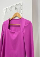 Top de licra buganvilla de manga larga y escote cuadrado. Lleva hombreras.