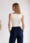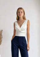 Top blanco de sisa con detalle de nudo en el pecho. LLeva cremallera invisible trasera.