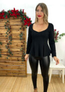 Top de manga larga peplum con escote cuadrado. Lleva cremallera invisible trasera. Colores disponibles: negro y burdeos.