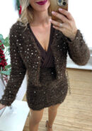Torera en color marrón chocolate de tejido suave y lentejuelas