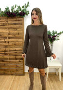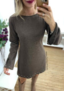 Vestido midi de vuelo y punto suave marrón con detalle de tachas.
